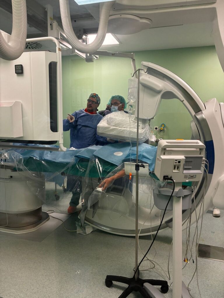 Posteriormente, pudimos trasladar este conocimiento a la práctica mediante casos en vivo en la sala de hemodinámica, donde compartimos cada paso del procedimiento de embolización, incluyendo nuestra técnica EBI y el método de análisis intraoperatorio que utilizamos para confirmar el cierre efectivo de los puntos de fuga. Esta parte “hands-on” permitió a los asistentes observar en tiempo real cómo se toman decisiones durante el procedimiento, cómo se analiza la dinámica venosa y cómo se optimiza el tratamiento para lograr resultados duraderos.